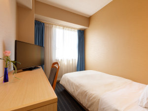 広さ約10〜11平米のお部屋に幅103cmのベッドを配置。洗浄機能付トイレ完備。Wi-Fi対応機器をお持ちの方は快適にネット環境を利用いただけます。