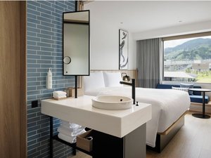 84室の客室は平均25uとコンパクトながら、シャワーブースを設けることで、シンプルでゆとりのある空間を実現しました。寝心地のいいベッドはもちろん、無料Wi-Fiも備えており、快適に過ごしていただけます。