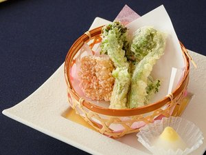 油物 揚げ胡麻海老衣 旬の山菜天婦羅