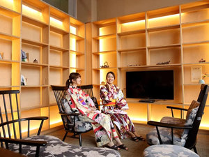 温泉の後はモダンなソファでくつろげる湯上りコーナーで