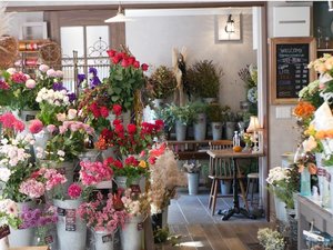 1階にはお花屋さんと小さなカフェ。お花の香りに癒されます。