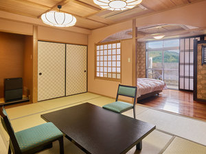 プライベート感いっぱいの、半露天風呂付のゆったりとした和洋室。