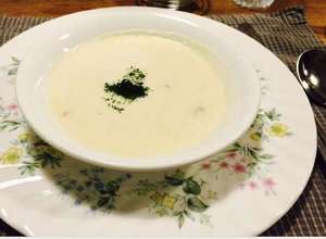 夕ご飯のクリームたっぷりクラムチャウダー。