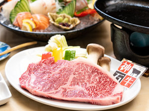 霜降りが美しい神石牛ステーキをはじめ、新鮮な魚介のお造り大皿盛り、