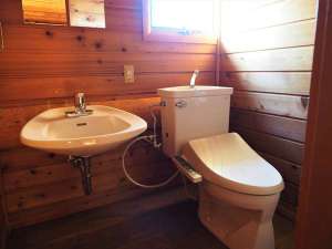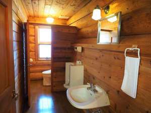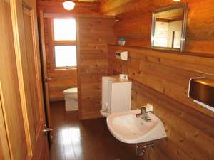 1階 男子トイレ。ログハウスロッキーでは洗面所、トイレは男性用女性用別にあります。