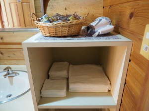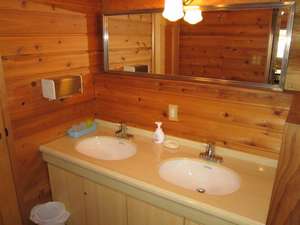 女性専用洗面。ログハウスロッキーでは洗面所、トイレは男性用女性用別にあります。