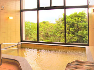 森を望む釜の露天風呂が付いた、広々とした大浴場です。