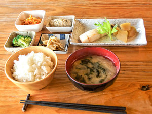 野菜・卵料理・お魚料理・ご飯・みそ汁の和朝食セットを、