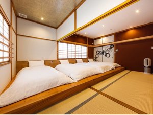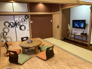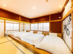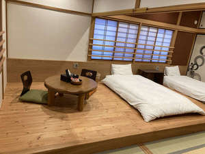 当施設の2階にある20畳の和室。最大7名様宿泊可能。グループや子連れのファミリーにオススメです。冷蔵庫、電子レンジあり。