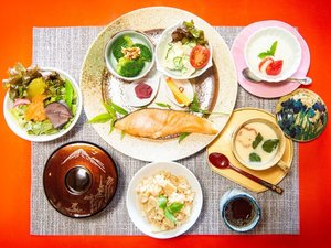 朝は体にやさしい和朝食郡上産コシヒカリを土鍋でふっくら炊き上げたご飯と、体に優しいおかずをご用意。