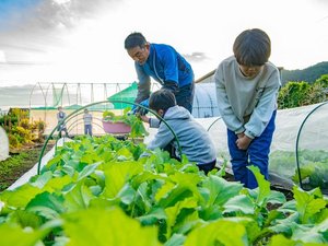 朝の新鮮な空気の中で農業体験も楽しめます。家族みんなで自然に触れ、心も体もリフレッシュ!