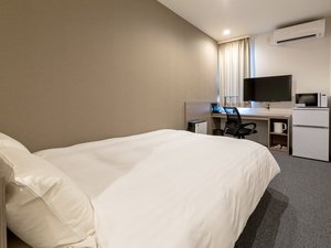 シモンズ製ダブルベッド(W140×L195サイズ)1台を完備。TV・デスク・チェア・冷凍冷蔵庫・電子レンジを備えておりますので連泊でも快適◎
