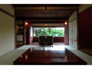 【本館】昭和の名残を残すこのお部屋「松 matsu」は、その部屋名称の通り、随所に地松の古木をふんだんに使用し、窓が広く取られ、大変開放的な造りとなっております。