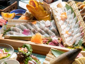 【2大グルメ会席】漁港で毎朝仕入れ&館内生簀で鮮度抜群!天然魚の姿造りはお一人様ずつご用意。