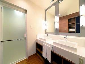 洗面化粧台はダブルボウルなので、2人同時に使えて快適。