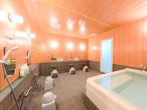 大浴場(男性専用)は16時30分からご利用いただけます。1階に男性専用、2階に女性専用シャワーブースあり。