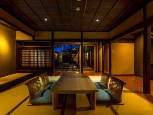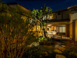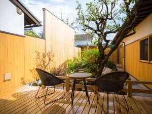 縁側風のテラスで、湯上りの夕涼み、月夜の一杯、目覚めの珈琲も(A棟)