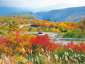 県内有数の紅葉スポット 秋の蔵王エコーライン。始点までお車で約15分