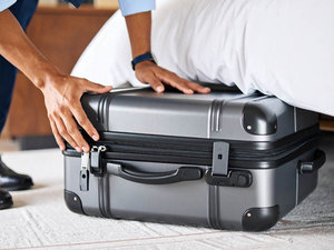 ■ベッドの高さを調整し利用できるベッド下収納。スーツケースも収納可能