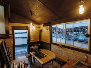 オプションでBBQや焼肉、焼き鳥が楽しめるレトロ調の専用スペースは、換気扇完備。雨や寒さをしのげる他、スライドドアを開放すれば、ダイニングエリアと合わせて16名が楽しめる十分なスペース。一体感を共有できるのでチームビルディングやパーティーに最適!
