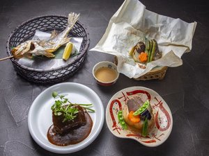 『旬魚の串焼き』『旬の山海奉書焼き』