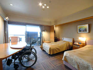 車イスをご利用の方でも何不自由なくお過ごししていただきたく、バリアフリールームもご用意しております。