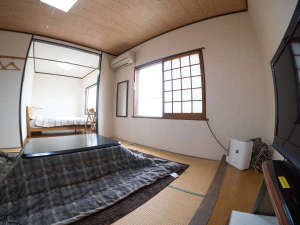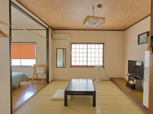 和洋室和室と奥にフローリング洋室。ダブルベッド設置