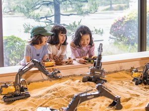 大人も子供も夢中!虹の砂場でショベルカーを使ってご当地グッズのお宝ゲット!