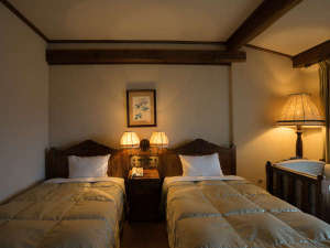 【スタンダードツインルーム】木々が立ち並ぶ林を望むお部屋です。朝は小鳥たちのさえずりでお目覚めを♪