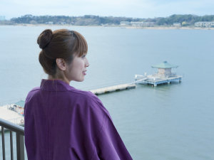 紫水館角部屋からは湖畔が一望できます。朝夕の移りゆき時間がたのしみ!