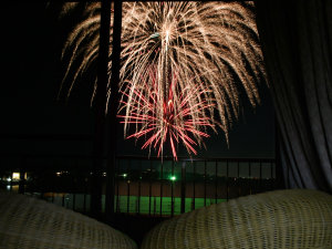 花火に一番近い宿ならでは、ご宿泊のお部屋から涼しく快適に、美しい湖上花火をご覧いただけます。