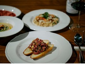 ご夕食時にはシェフがお伺いし、島の獲れたて魚介や自家菜園のお野菜、大自然にはぐくまれた山菜などの食材をふんだんに使ったイタリアンフルコースを1組だけのプライベート空間でお愉しみいただくプランです。