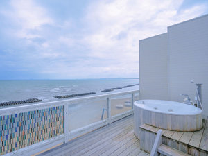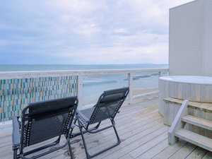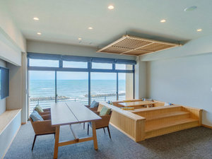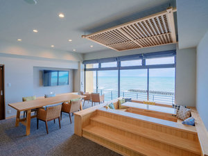 なんと4階フロアをマルっとお部屋にしたここにしかない絶景を味わうお部屋になります。海に面した海辺、朝日を感じる寝室、変わり囲炉裏処、海が見える絶景ジャグジー内風呂&本格サウナ、屋上ジャグジースパ、山側には和室(20畳)が。ファミリーやグループで貸し切って、波津海岸を一望できる贅沢なひと時をお過ごしください。