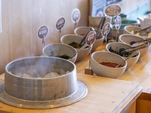 地元漬け物やお味噌汁。等。ご飯はおかわりできます。