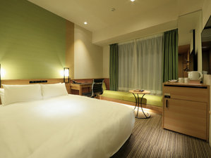 1,500mm(シモンズ社製)禁煙、無料Wi-Fi、テレビ、デスク、こあがりソファ、冷蔵庫、ユニットバス、館内着、スリッパ