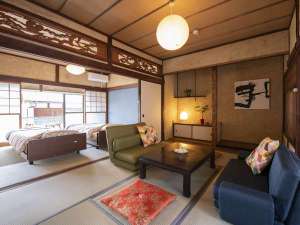 古民家の2階の完全貸切です。2間には、ベッド2台の寝室スペースとソファベッド2台のある居間があります。布団を加えて、5名様まで宿泊可能です。
