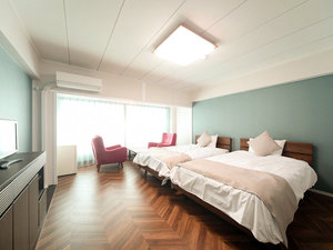 1階に1部屋、2階に3部屋あるセミダブルベッド使用のツインルーム。エキストラベッド利用可能で最大3名様迄ご利用可能です。客室にはテレビ有、Wi-Fiも利用可能