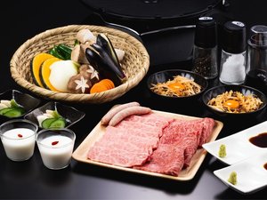 那須黒毛和牛と地元食材の室内焼肉セットと那須高原のパンの朝食付きプランです。