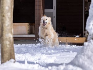 自家源泉かけ流しの露天風呂からは、四季折々の風景とドッグランで元気に遊ぶわんちゃんの様子もご覧になれます。