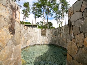 馬瀬の山並みと星空を眺望する2つの露天風呂。そして、日本古来の入浴法で蒸気浴を楽しむ釜風呂含めた3つのサウナと12の内湯。