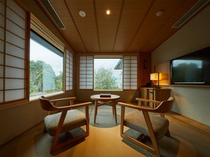 専用庭を臨む内湯では時間の移ろいにそった音景がくつろぎの湯浴みを演出します。