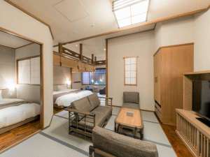 和ベッドを配した寝室スペースと畳敷きの リビングに加え広縁まで設えました。
