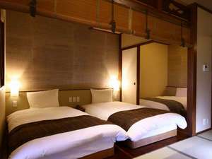 ■寝具:和ベッド3台〜4台(シングル:幅110cm×縦195cm×高さ33cm程度)