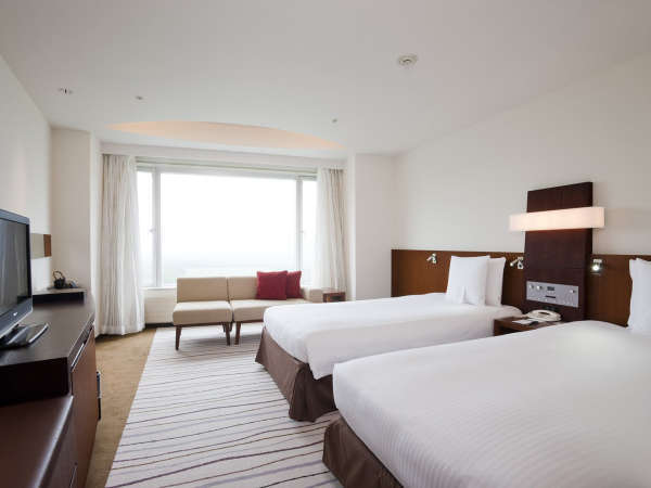 【冬】デラックスパノラマルーム ツイン。2面の窓からの絶景をお楽しみください♪
