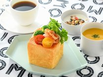 朝食のおすすめは宿泊者限定のオリジナルメニュー「赤坂キューブトースト」です。