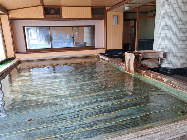 【大浴場 総檜風呂】開放感溢れる総檜造りの大浴場です。広々とした湯船でゆったりとした時間が流れます