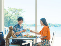【夕食イメージ】海を眺めながらのお食事はリゾート気分満点。ペットも一緒にゆっくりとご堪能ください。