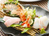 【夕食一例】海産物の宝庫「天草」で獲れた海鮮を使用したお刺身盛り合わせ。ぷりぷりで新鮮そのもの。