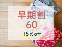 【早期割60】60日前までのご予約でお得に!◆早期予約&事前決済で15%OFF!(1泊2食付)