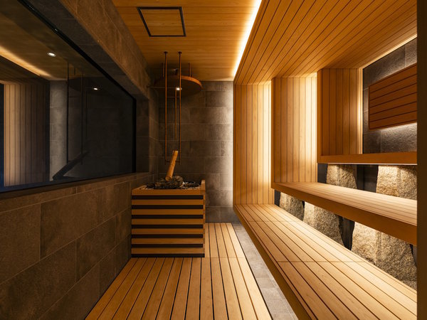 【2025年9月開業】京都河原町駅より徒歩6分。大浴場・サウナ完備 サウナ付きの大浴場、フィットネスジムを備えた |